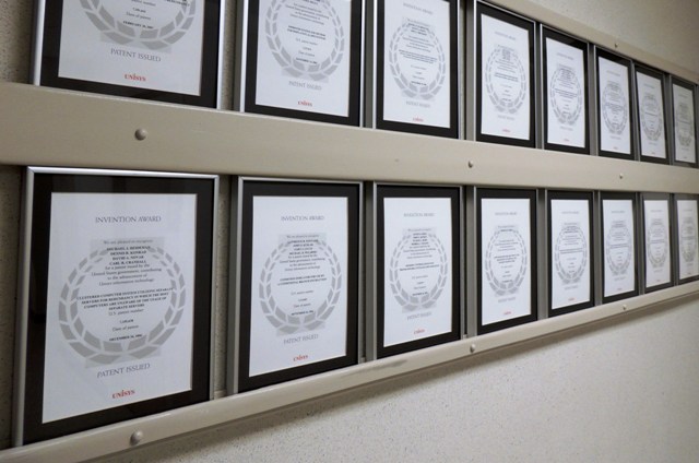 many patent certificates were displayed on the walls of UNISYS,